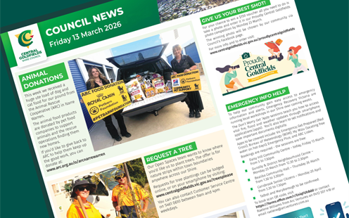 Central Goldfields Shire Council acknowledges and extends appreciation for the Dja Dja Wurrung People, the Traditional Owners of the land that we are on. We pay our respects to leaders and Elders past, present and emerging for they hold the memories, the traditions, the culture and the hopes of all Dja Dja Wurrung People. We express our gratitude in the sharing of this land, our sorrow for the personal, spiritual and cultural costs of that sharing and our hope that we may walk forward together in harmony and in the spirit of healing.