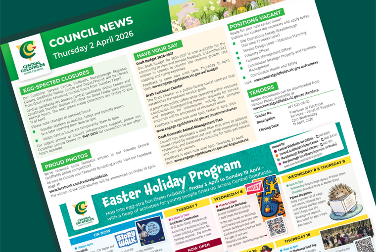 Central Goldfields Shire Council acknowledges and extends appreciation for the Dja Dja Wurrung People, the Traditional Owners of the land that we are on. We pay our respects to leaders and Elders past, present and emerging for they hold the memories, the traditions, the culture and the hopes of all Dja Dja Wurrung People. We express our gratitude in the sharing of this land, our sorrow for the personal, spiritual and cultural costs of that sharing and our hope that we may walk forward together in harmony and in the spirit of healing.